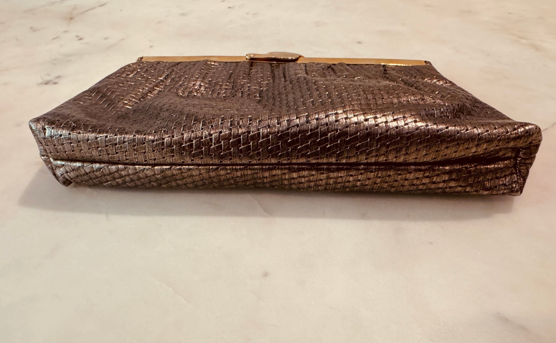 Vintage Etra Gold Leather Clutch: 1970s Metallic Woven Evening Bag